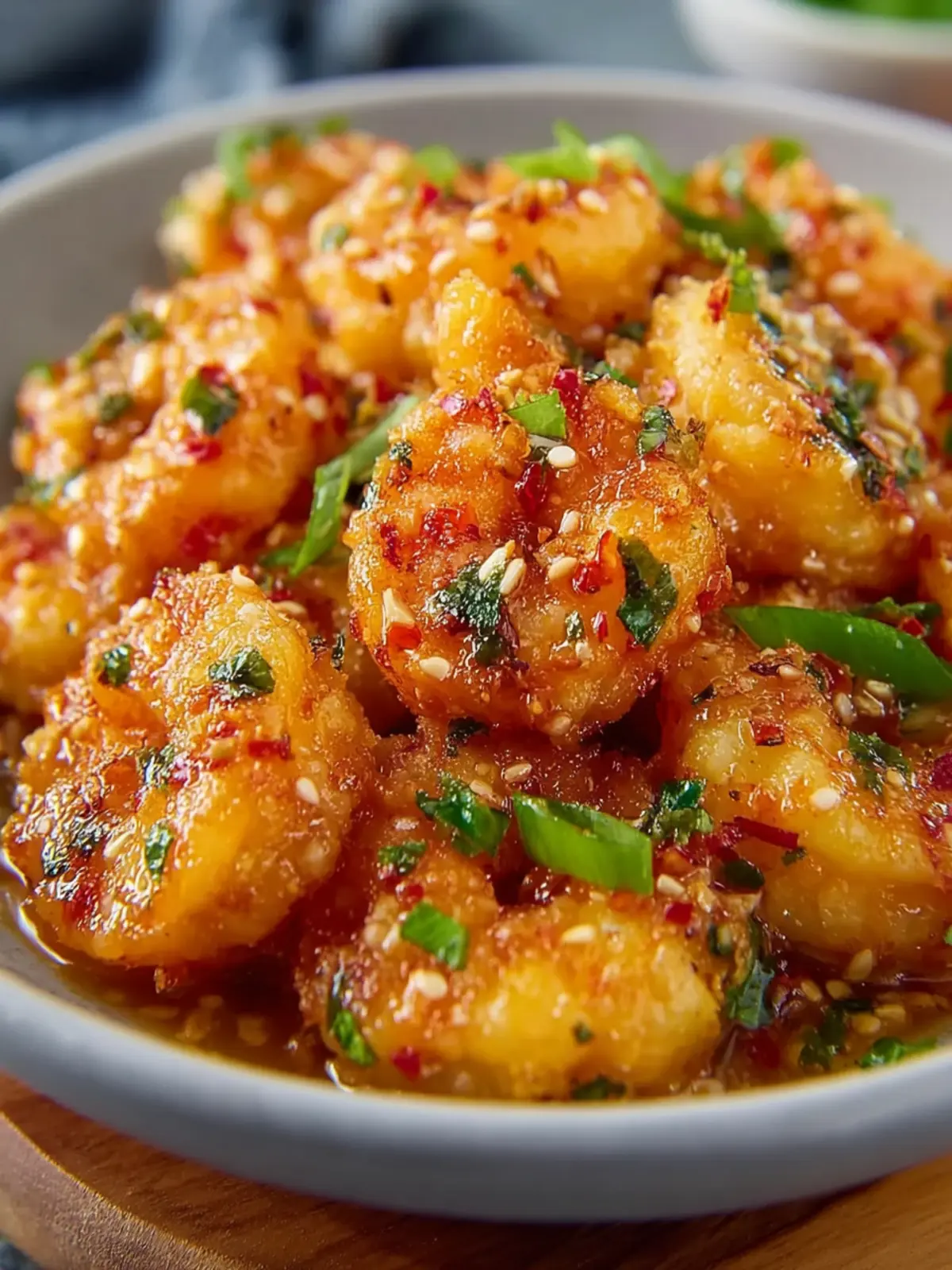 - Toss and Serve: Toss the crispy shrimp in the sauce or drizzle it over the top, depending on how saucy you like it. Serve immediately, garnished with green onions or shredded cabbage if desired.