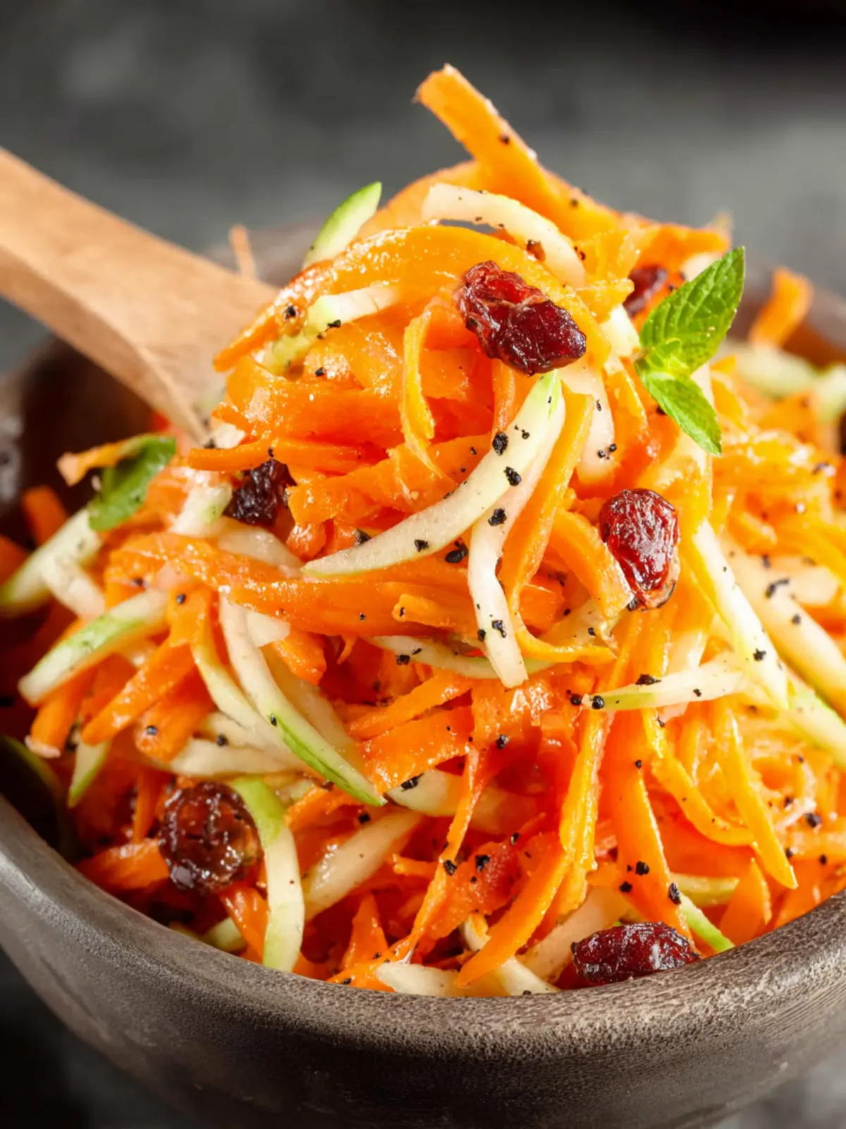 Nutrient-Dense Ingredients: This salad features ingredients packed with vitamins and minerals. Carrots are renowned for their high vitamin A content, promoting good vision and skin health, while apples offer fiber and antioxidants that contribute to overall wellness. Together, they create a nutritious powerhouse suitable for all ages.