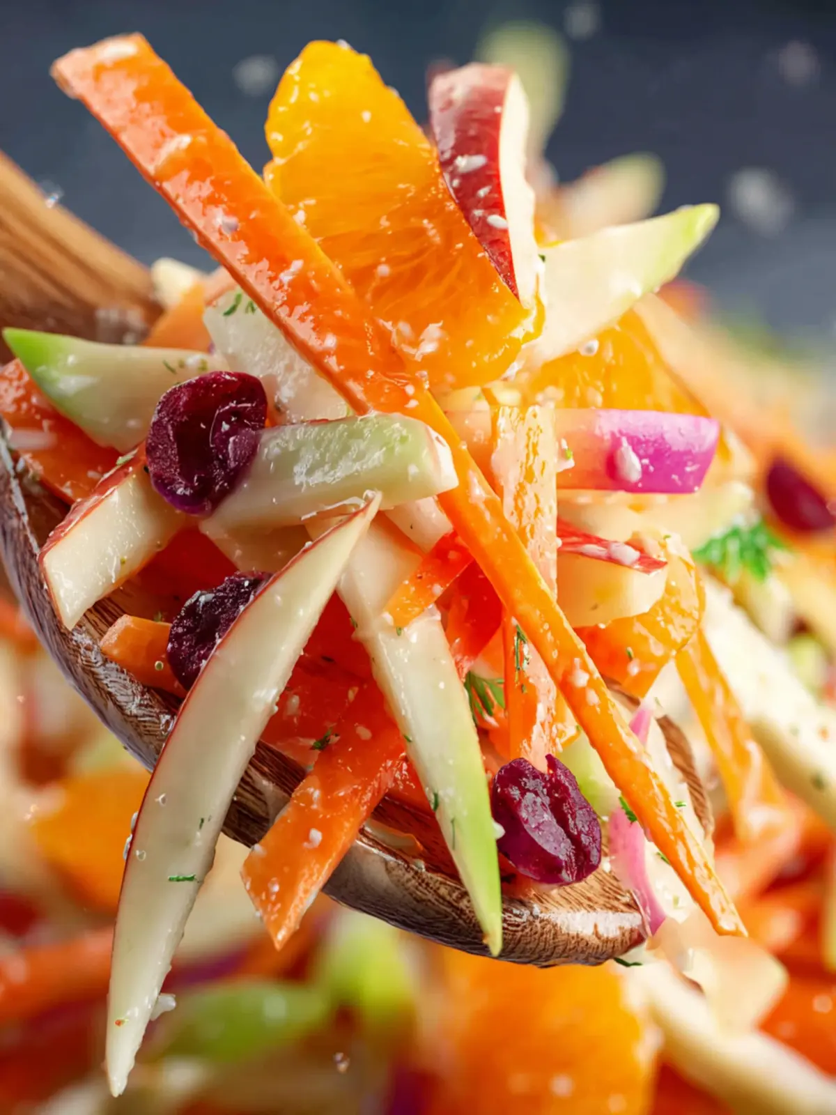 A refreshing salad featuring apples, carrots, and a creamy dressing.