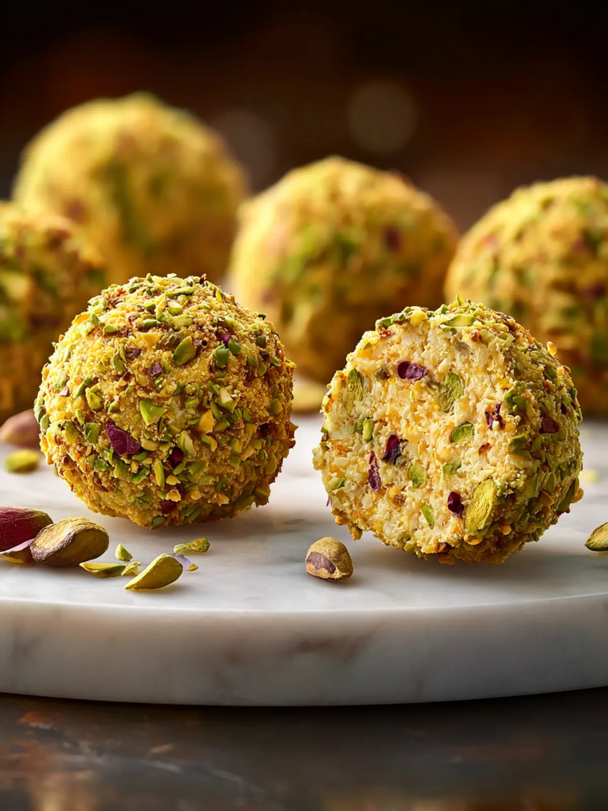 - Coat each ball in finely chopped pistachios until fully covered.
