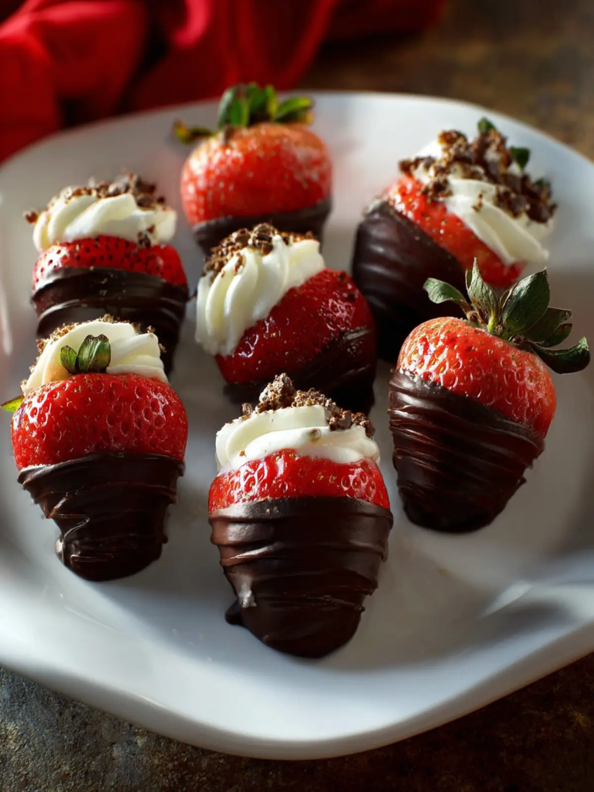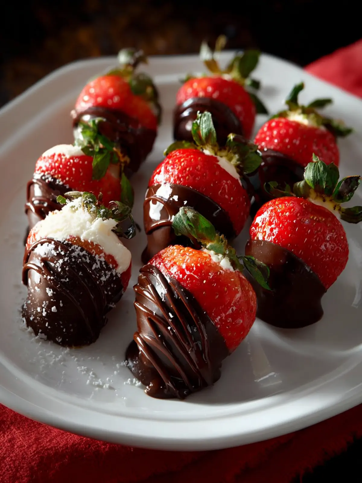 Share the joy of chocolate covered cheesecake strawberries by serving them on a beautifully arranged platter. Consider grouping them by flavor. For example, use dark chocolate for a rich treat, while white chocolate can add a splash of sweetness.