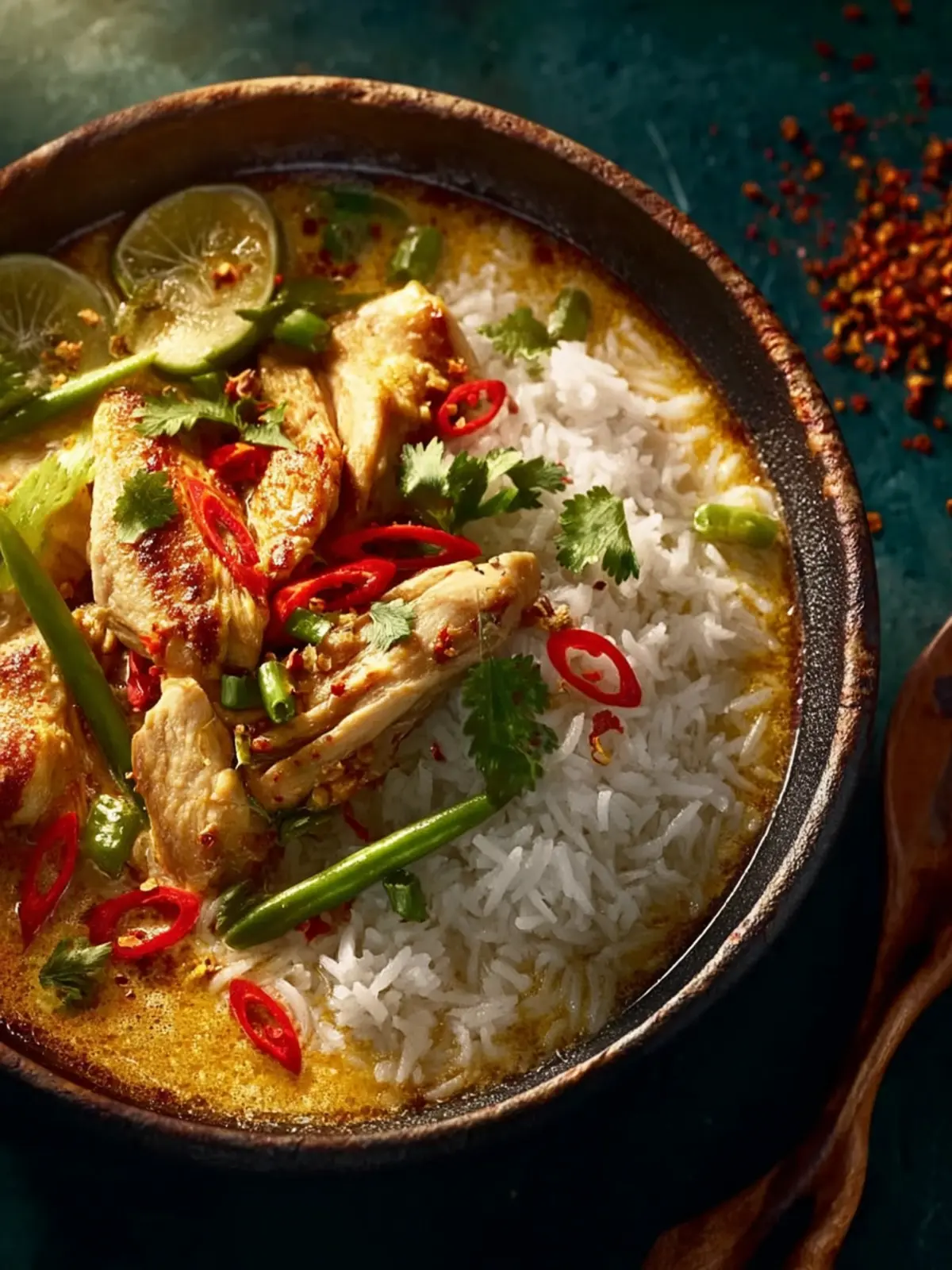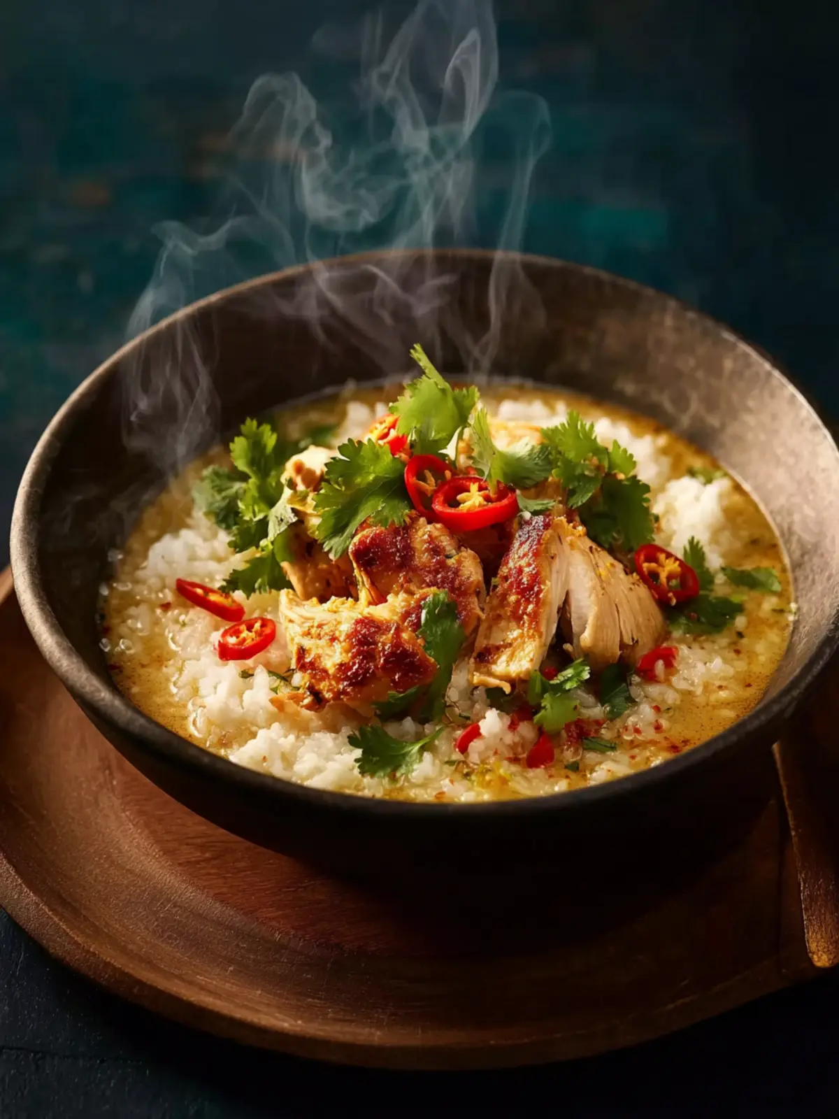A comforting and flavorful dish featuring chicken, rice, and coconut milk, perfect for a cozy meal.