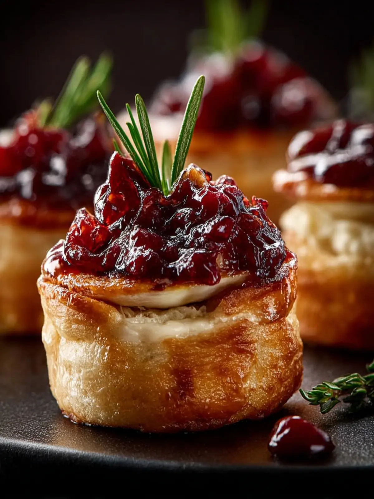 Presentation: The way these bites look is a feast for the eyes. The golden pastry crust, glistening with cranberry sauce, makes them an appealing addition to any appetizer spread, inviting guests to reach for them before they even take a seat.