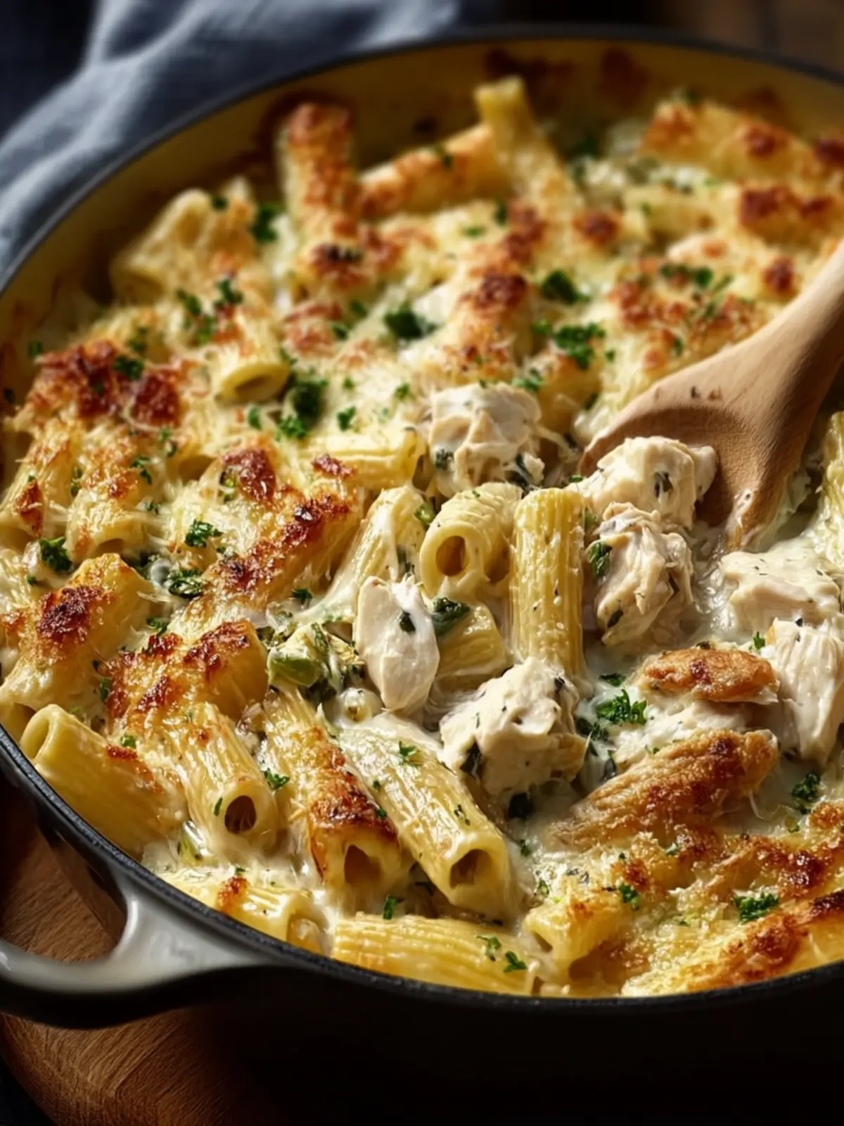 This recipe is a real crowd-pleaser. The rich, creamy sauce clings to each piece of pasta, while juicy chunks of chicken add heartiness to every bite. And let’s not forget the crispy, golden top that forms as it bakes—a delightful contrast to the creamy goodness beneath. It’s comfort food at its finest!