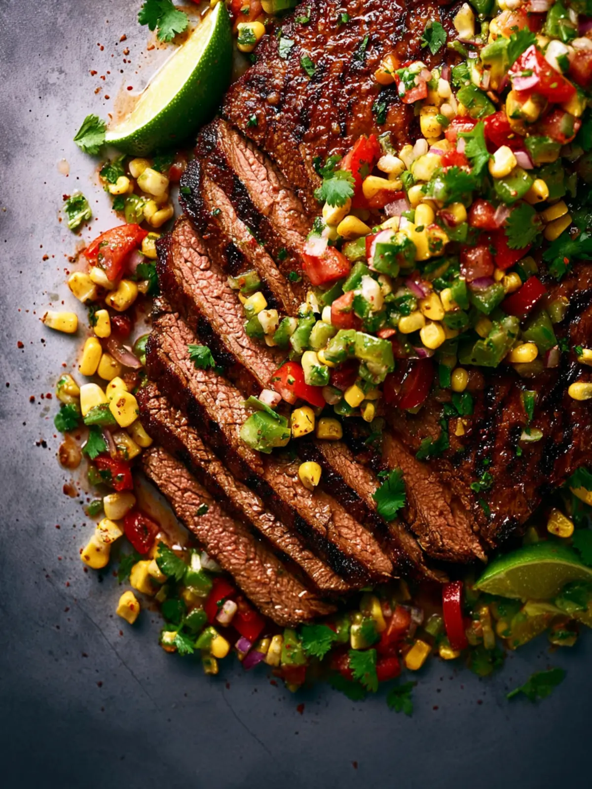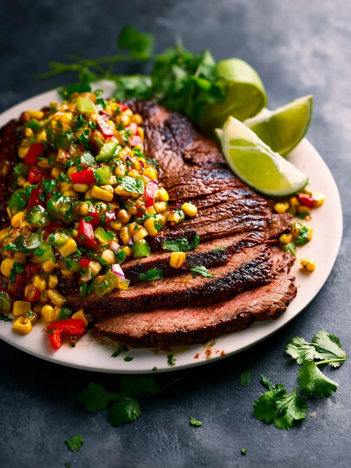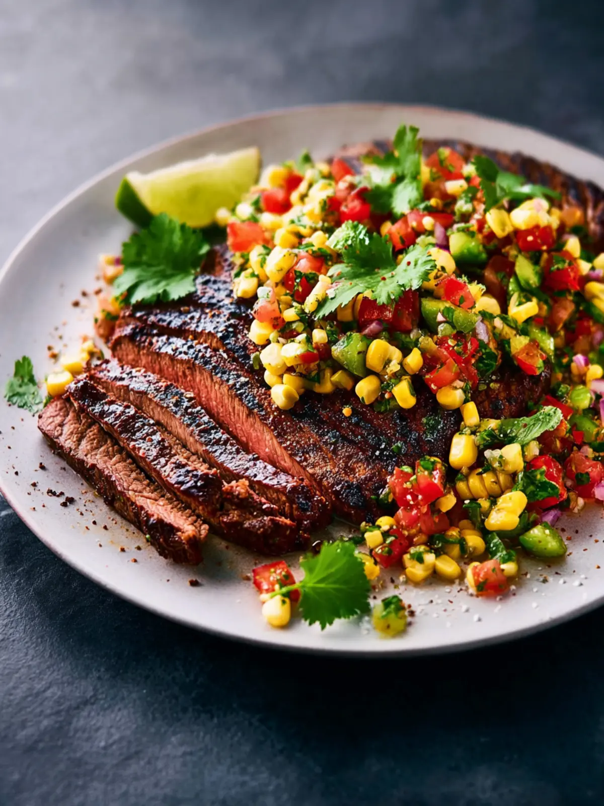 A perfect summer dish, flank steak with corn salsa embodies the essence of fresh ingredients and simple preparation.