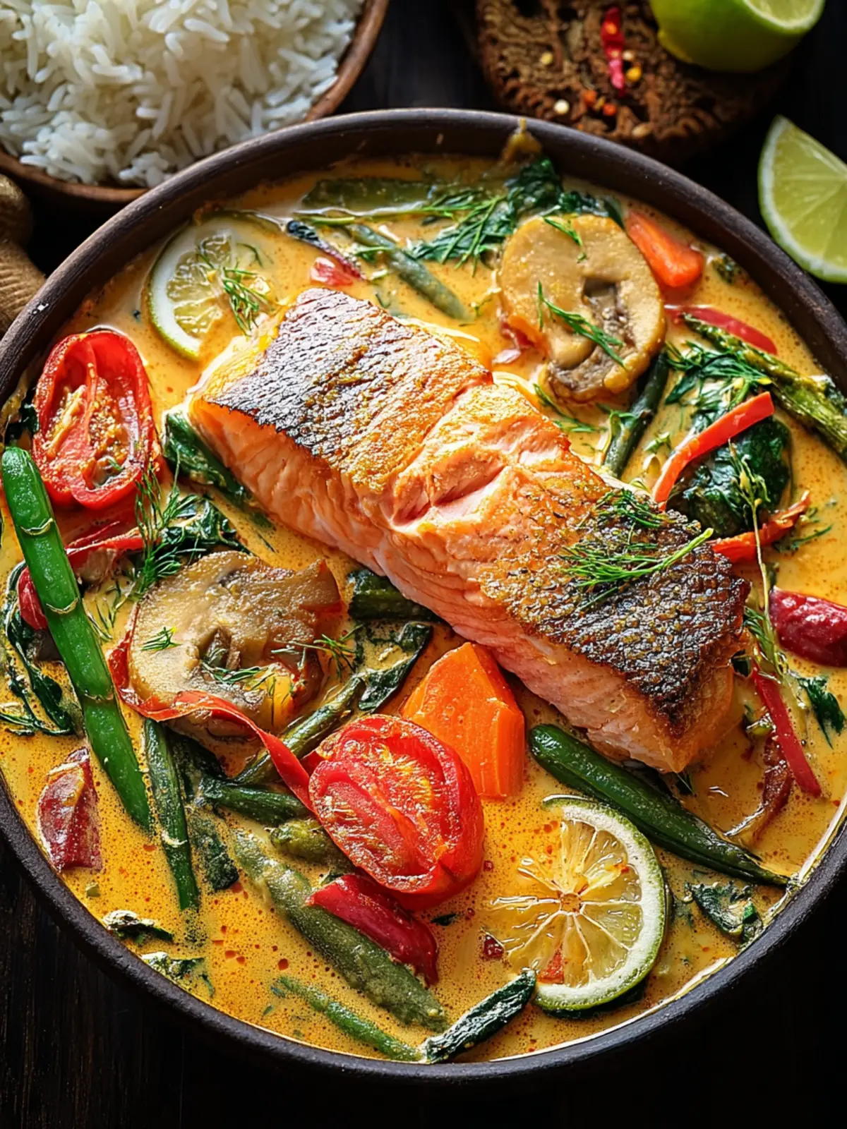 Rich Nutrients: Salmon is packed with omega-3 fatty acids, while coconut milk adds a creamy texture without compromising health, ensuring you feel good about what you’re eating.