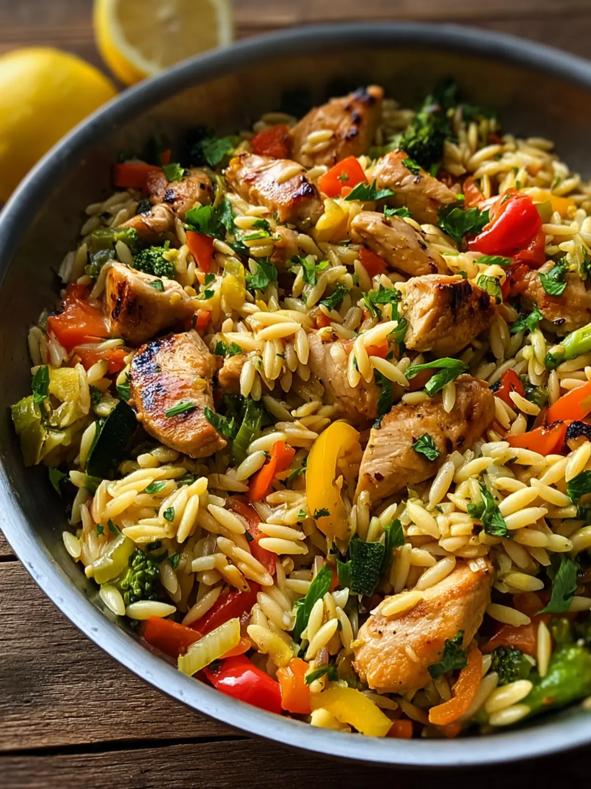 Lemon Chicken Veggie Orzo Stir Fry