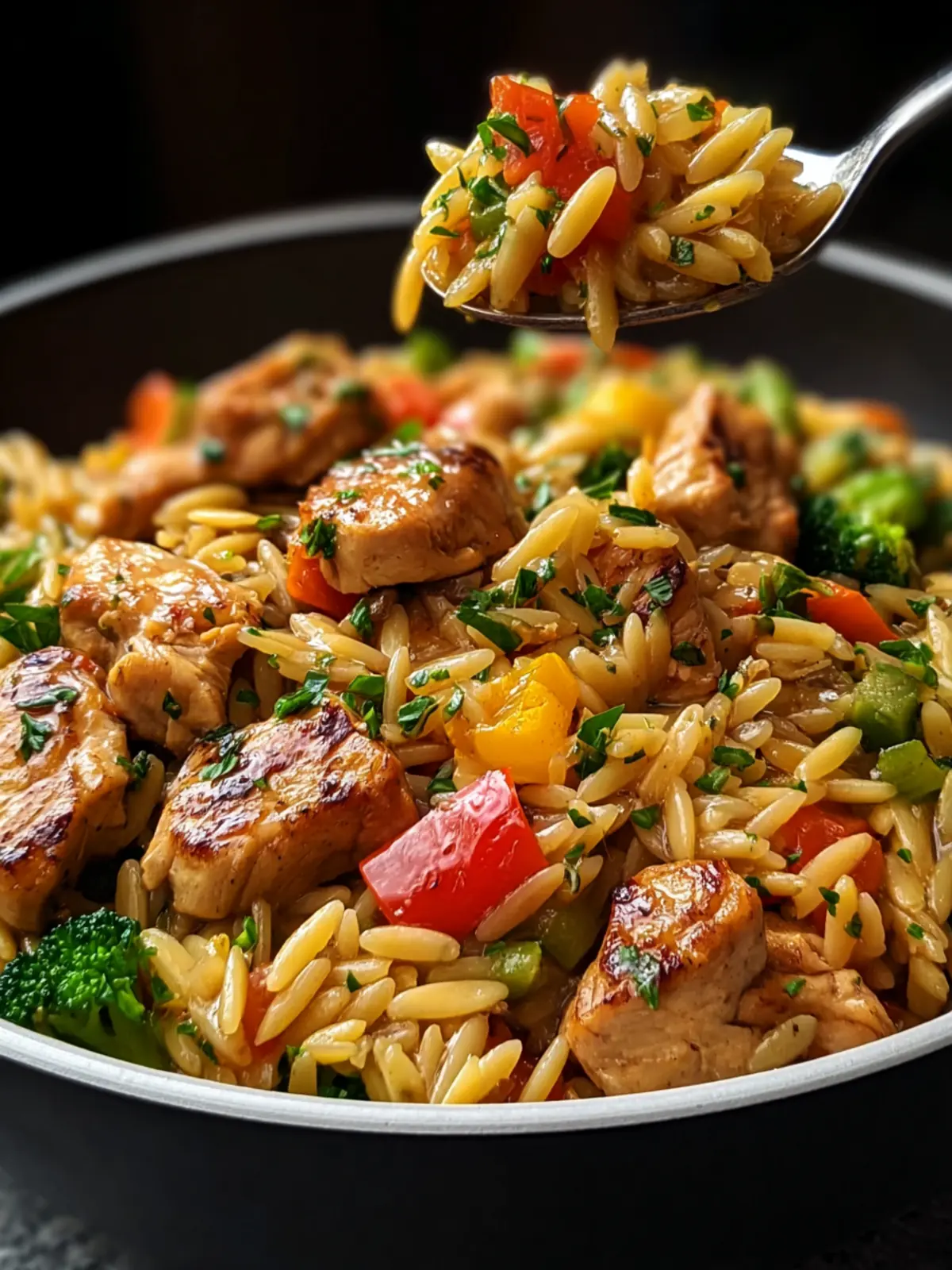 Crafted for those mid-week dinners, this easy-to-make recipe shines with its simplicity and versatility. Whether you’re coming home from work or just need a quick, nutritious dinner on the weekend, the lemon chicken orzo stir fry offers a perfect balance of protein, carbs, and veggies, all in one bowl. And let’s not forget about its stunning presentation; the bright colors of bell peppers and broccoli against the backdrop of golden orzo will truly make your plate pop.