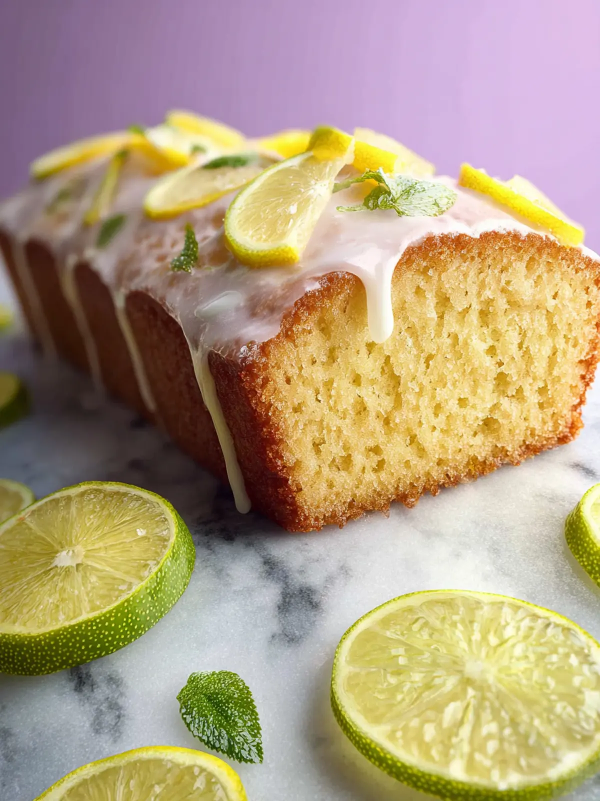 A delicious and moist lemon lime loaf cake topped with a citrus glaze and zest.