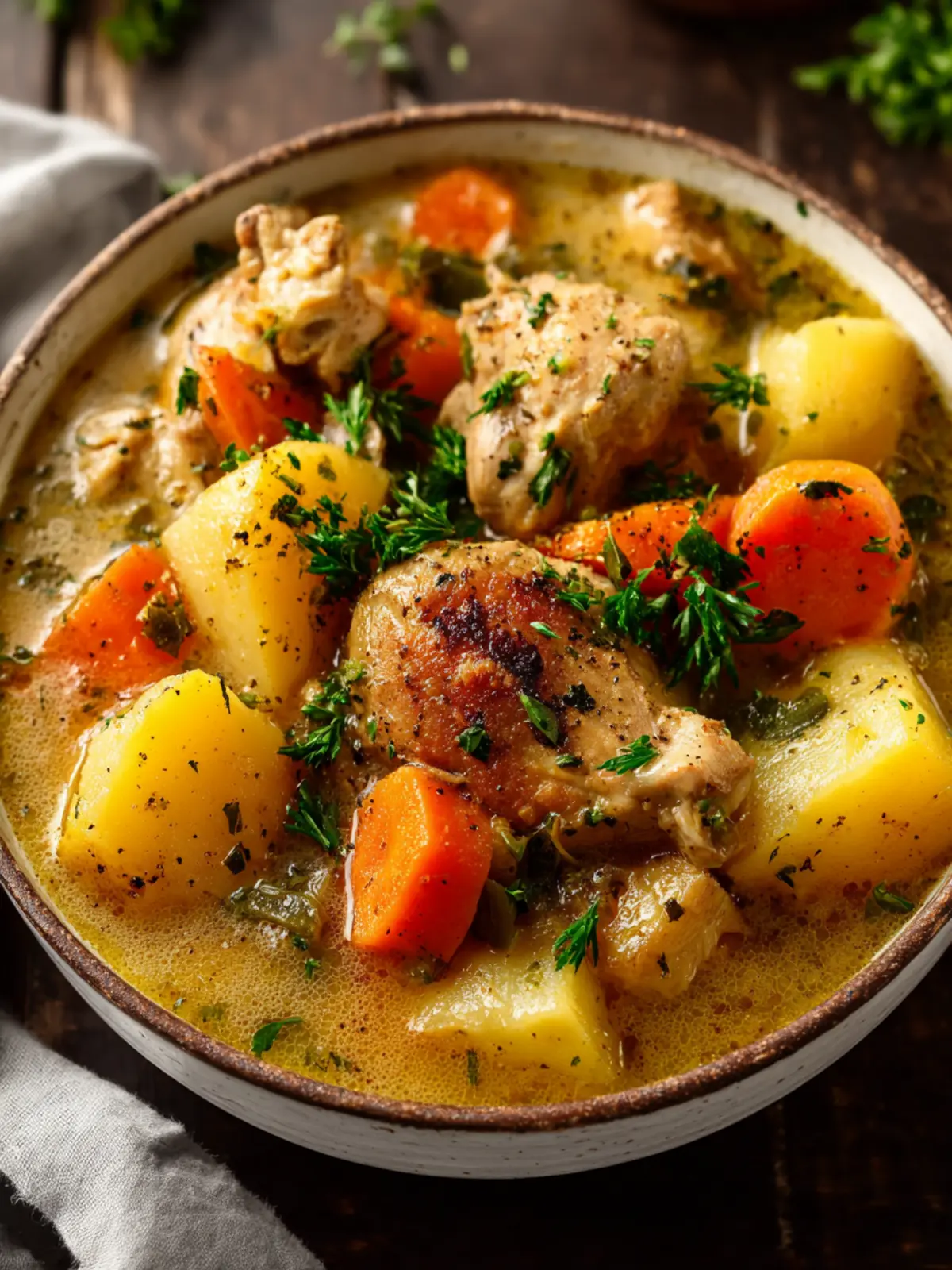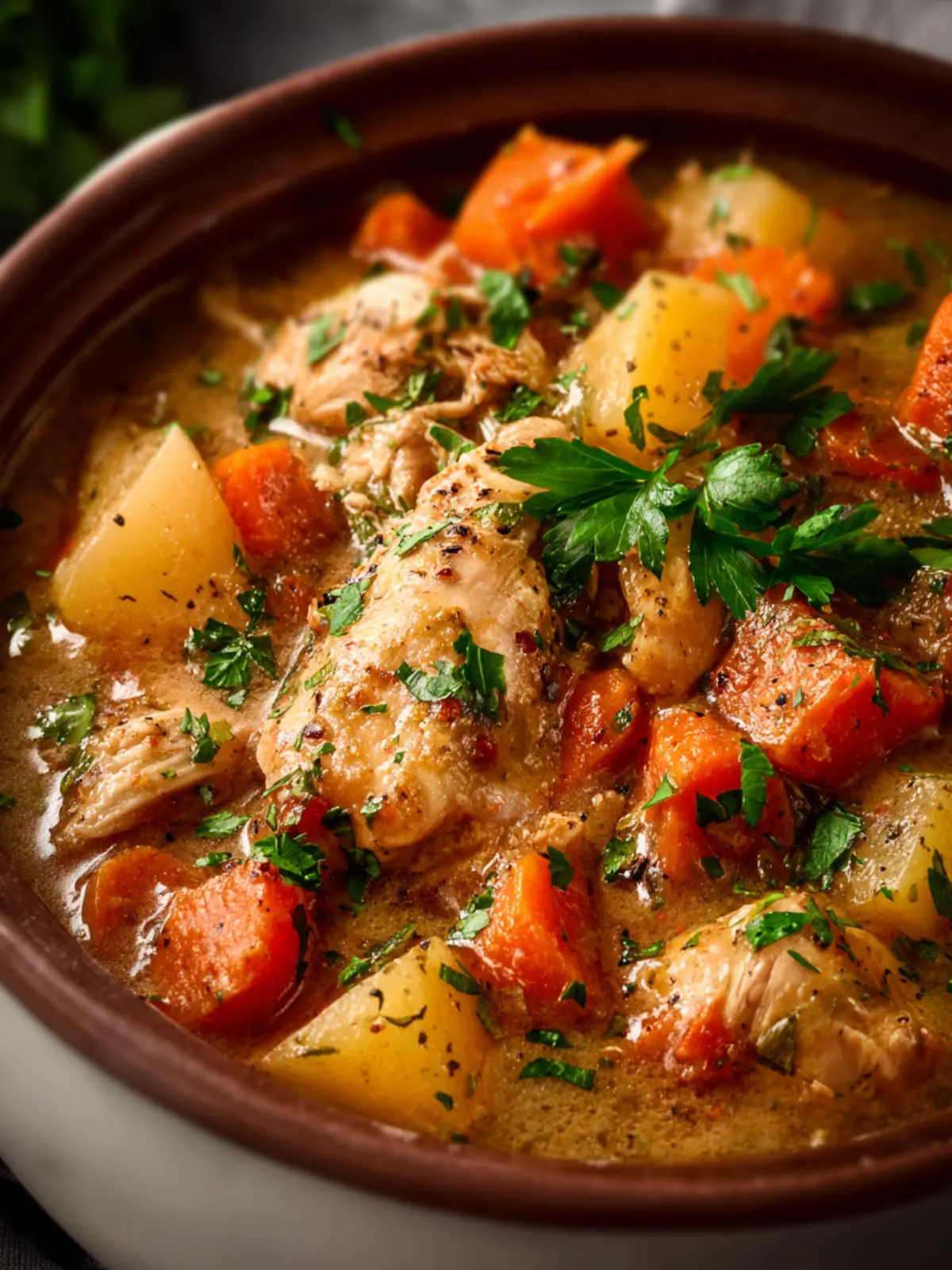 A hearty and comforting chicken stew made in a slow cooker.