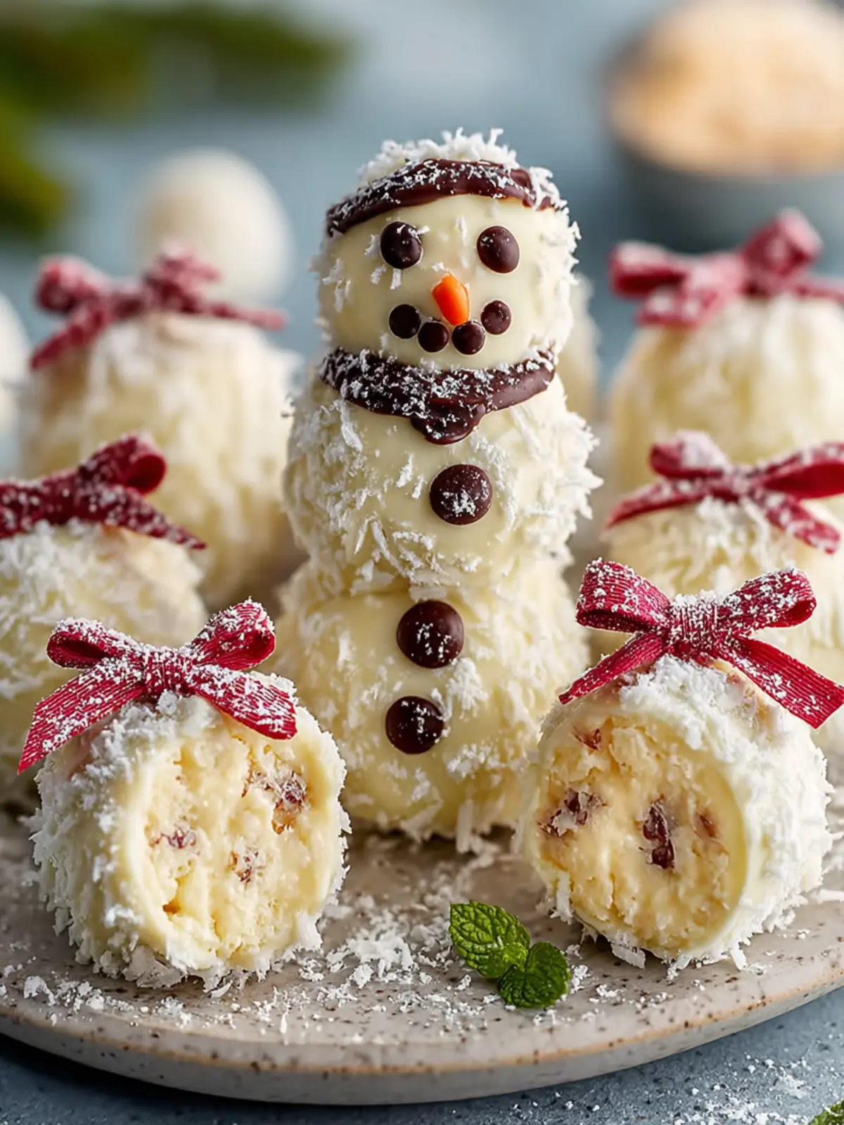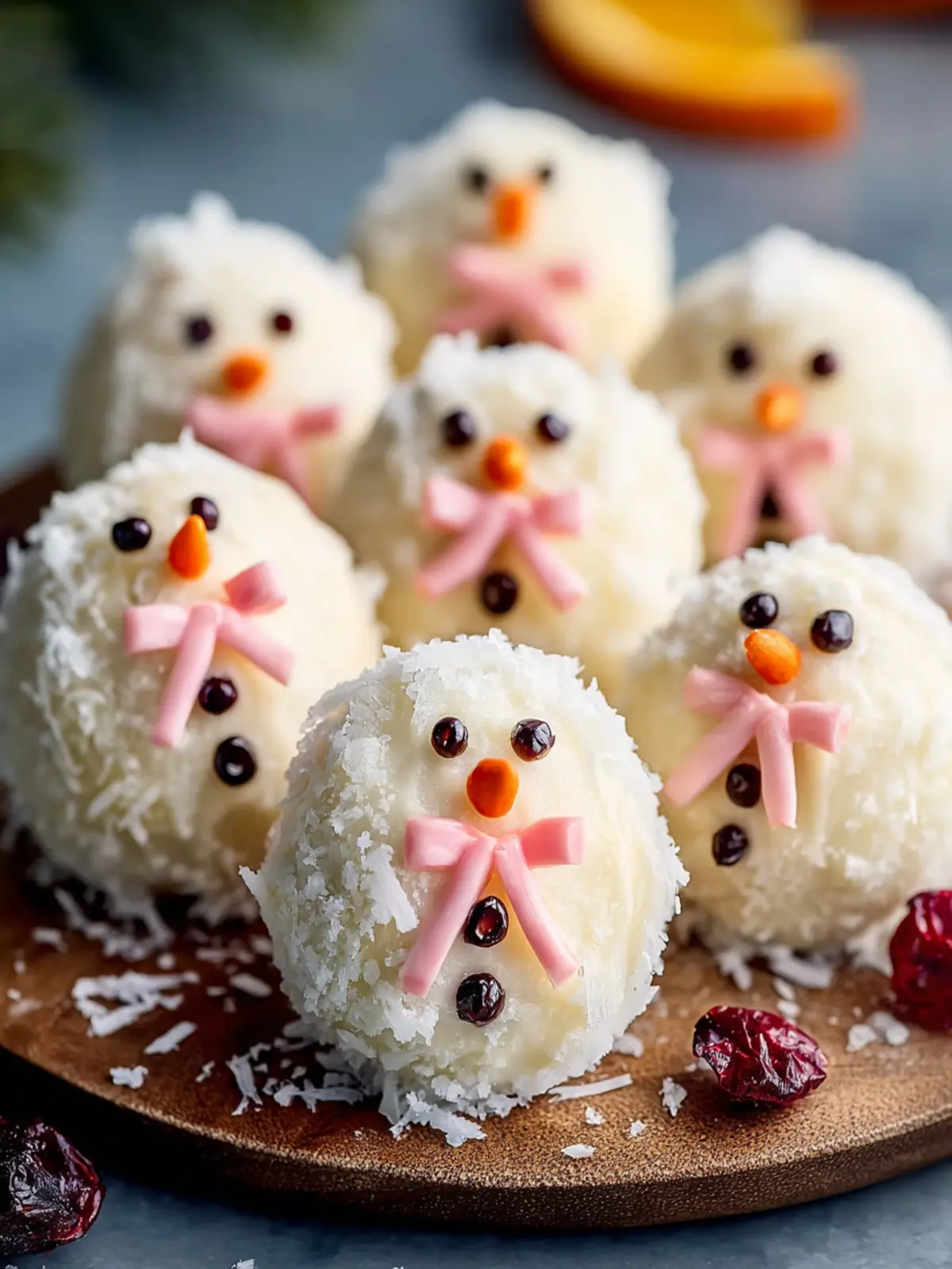 Decorative Elements: Don’t forget about aesthetics! Use mini chocolate chips for eyes, orange candy for noses, and shredded coconut for a snowy effect. These little details make your snowman truffles delightful to behold.