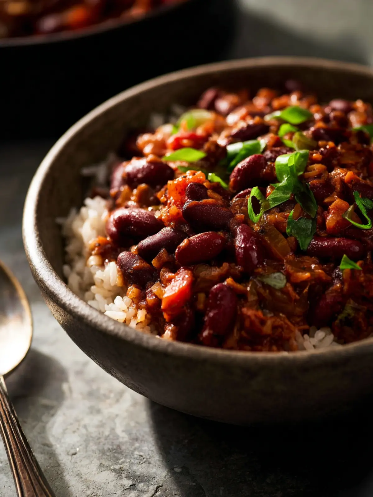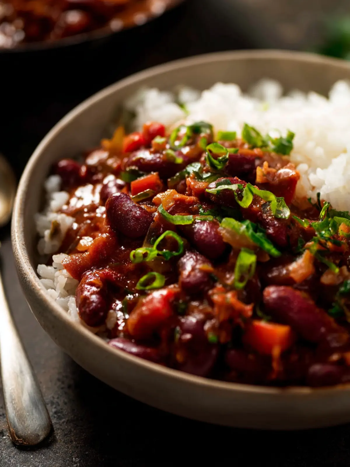 This hearty spicy red bean stew is packed with flavor and perfect for a comforting meal.