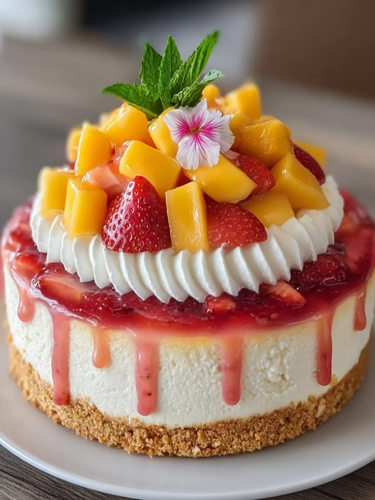 Tropical Mango Strawberry Cheesecake: The Best No-Bake Delight