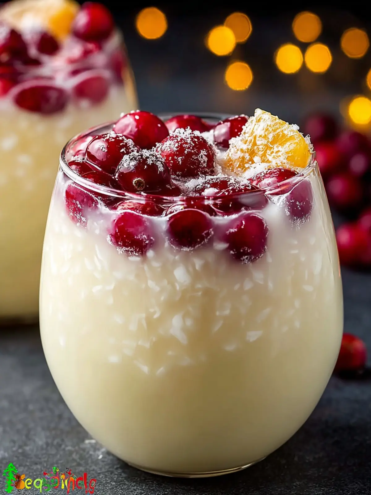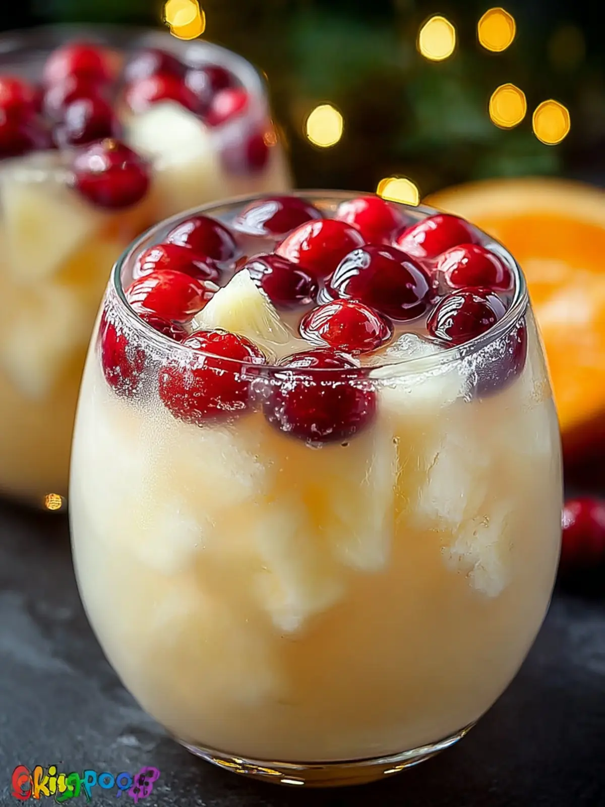 - Serve in glasses, garnish with cranberries, whipped cream, and a sprinkle of edible glitter or sugar if desired.